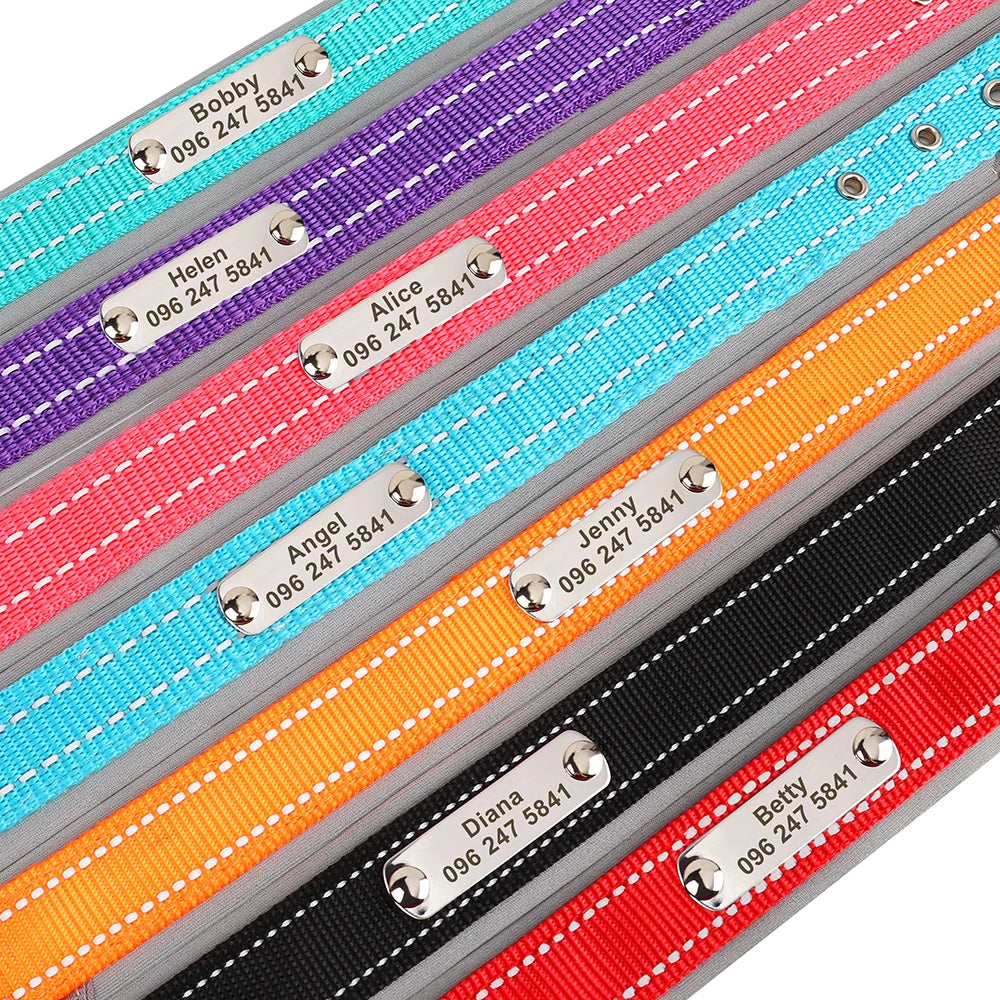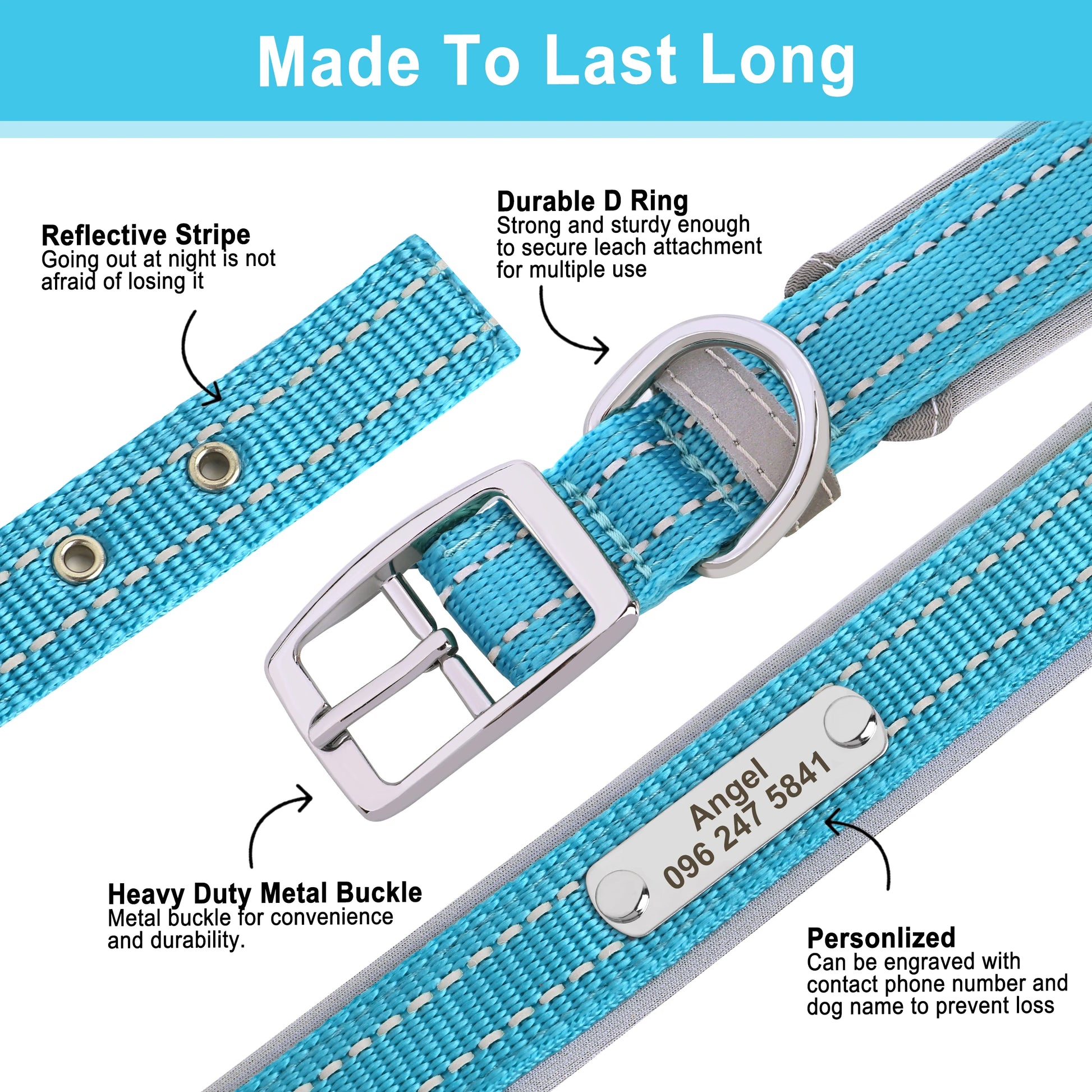 Collar personalizado y reflectante ajustable para perros pequeños, medianos y grandes (Pug, etc.)