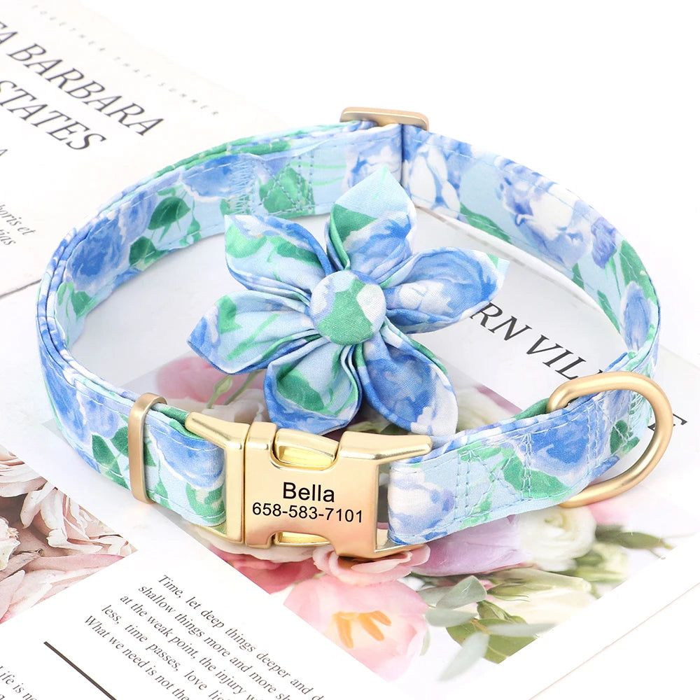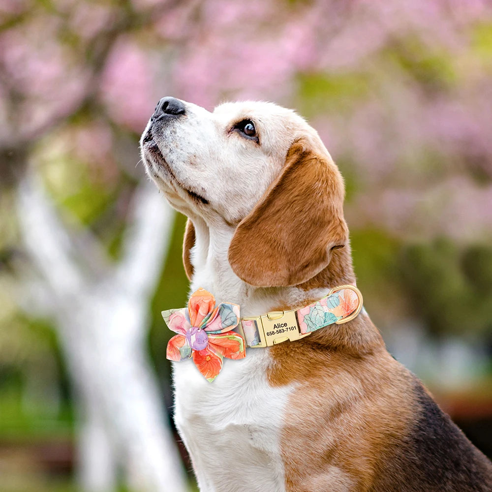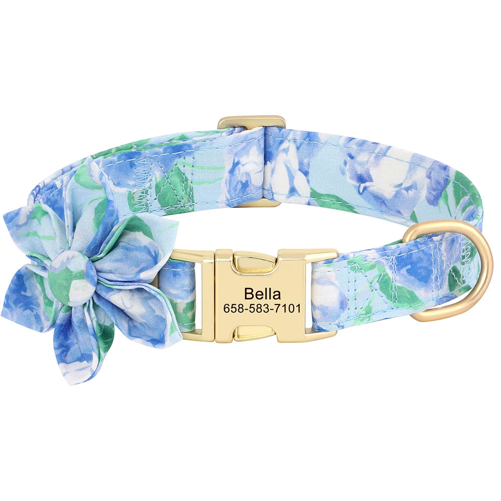 Collar con identificación para mascotas Con flor decorativa que se puede quitar
