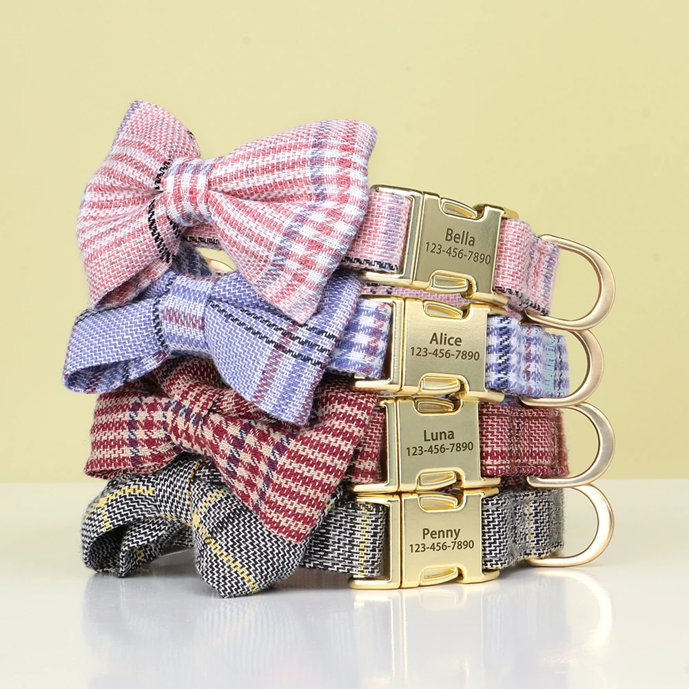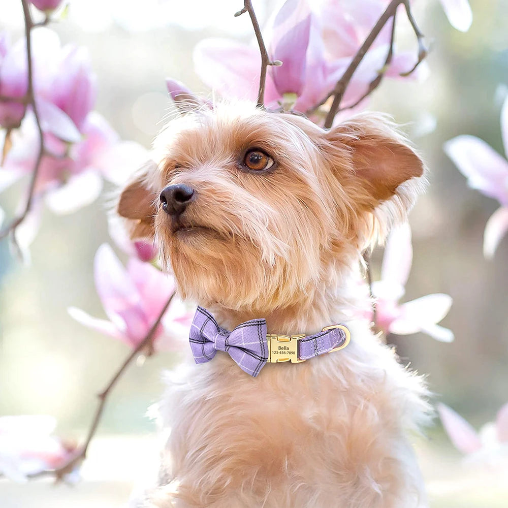 Collar personalizado de nailon con bonito lazo para perros pequeños y medianos (Chihuahua, etc.)
