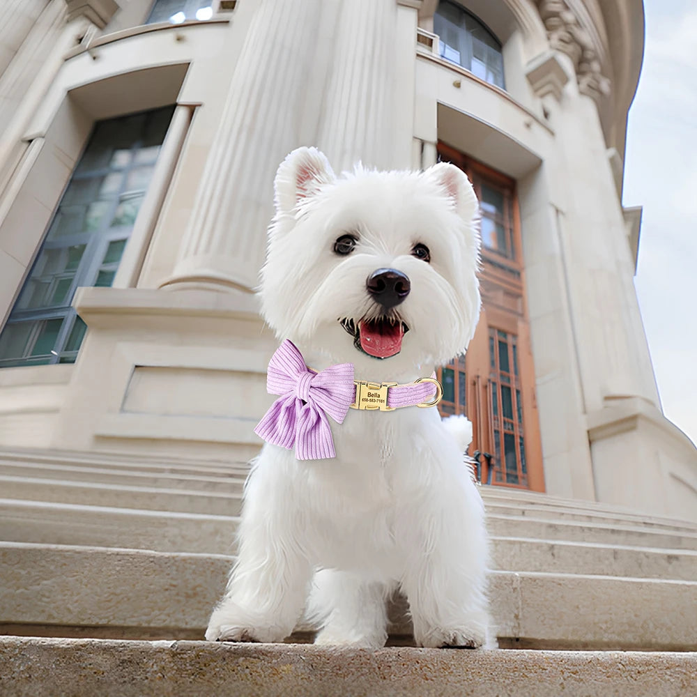 Collar personalizado ajustable con pajarita para perros pequeños y medianos