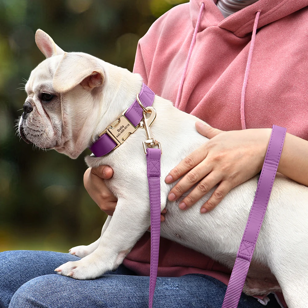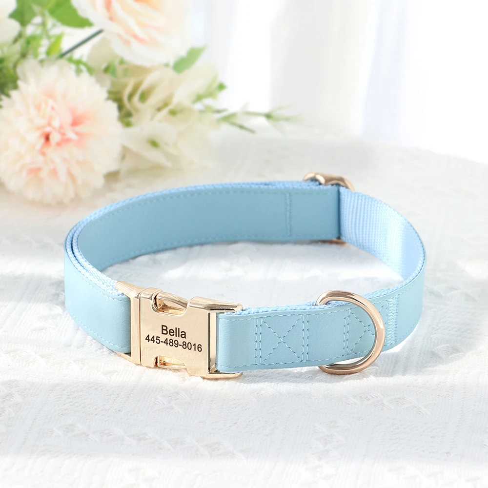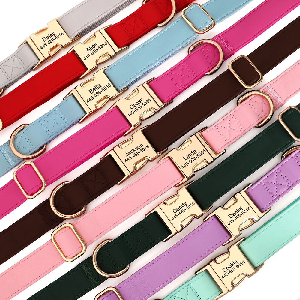 Collar personalizado Ajustable de cuero PU para perros pequeños, medianos y grandes (Chihuahua, etc.)