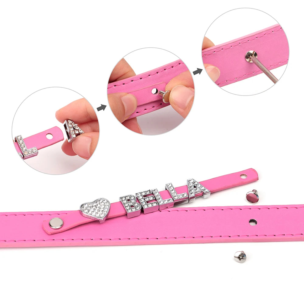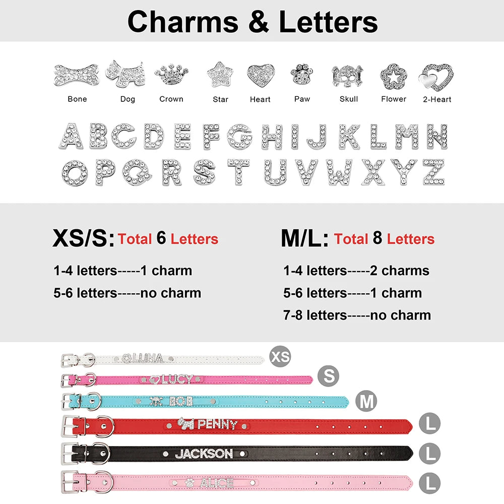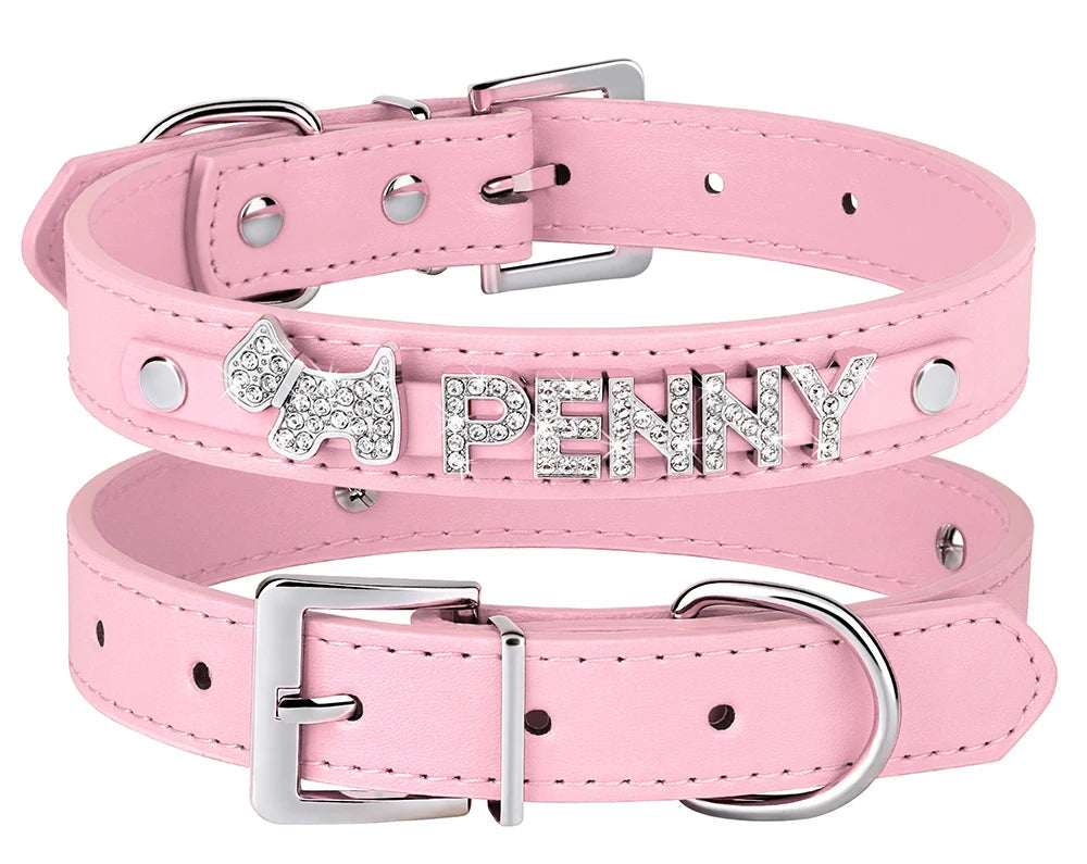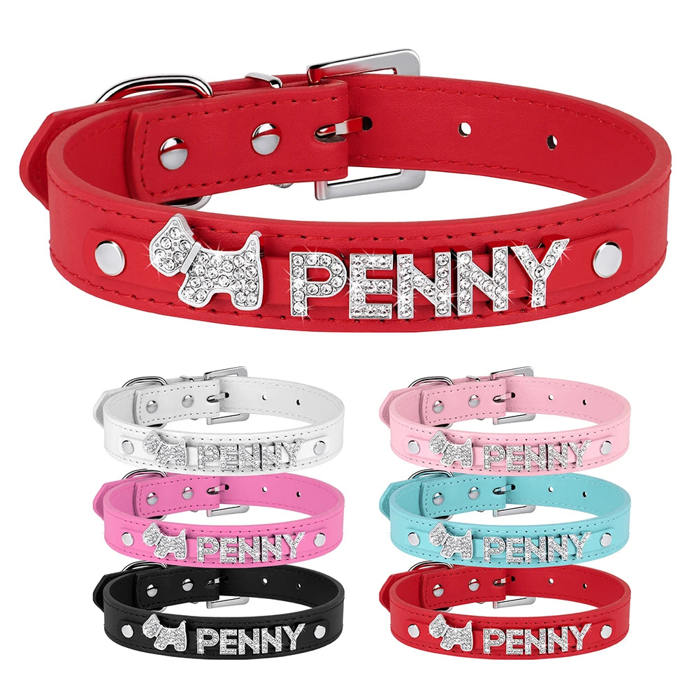 Collar personalizado de cuero PU con cristales brillantes y dije para perros
