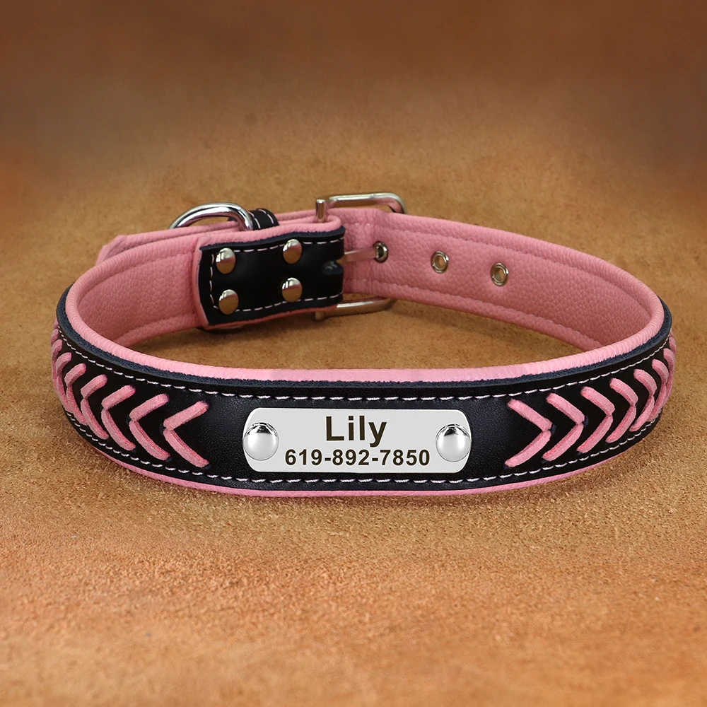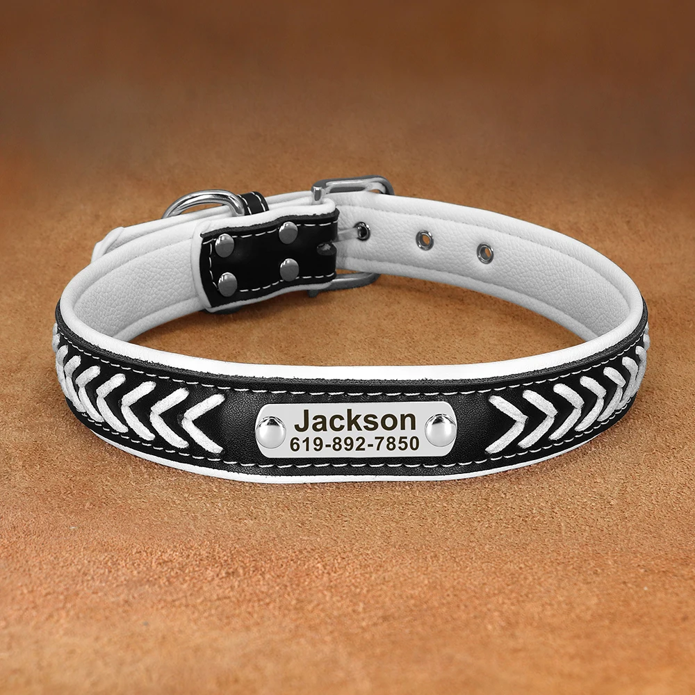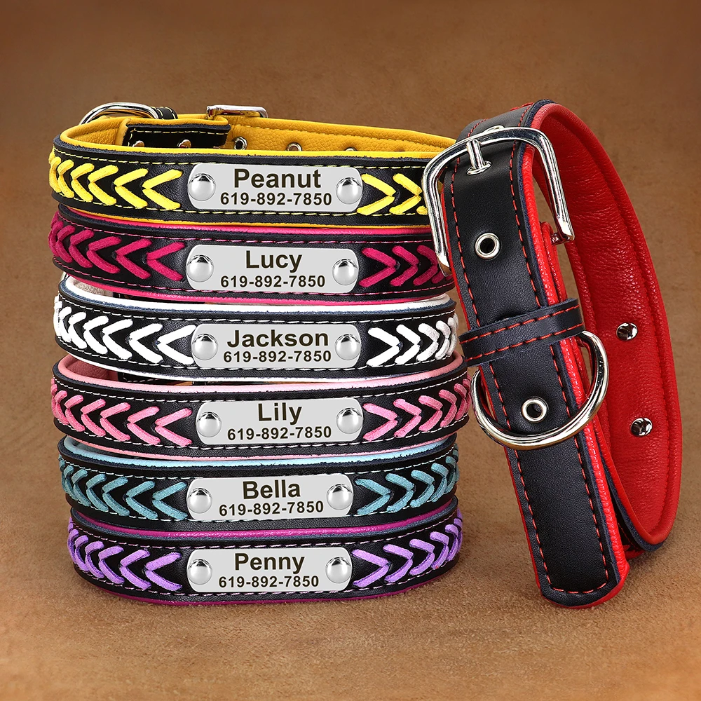 Collar Personalizado de Cuero PU Trenzado Acolchado para Perro