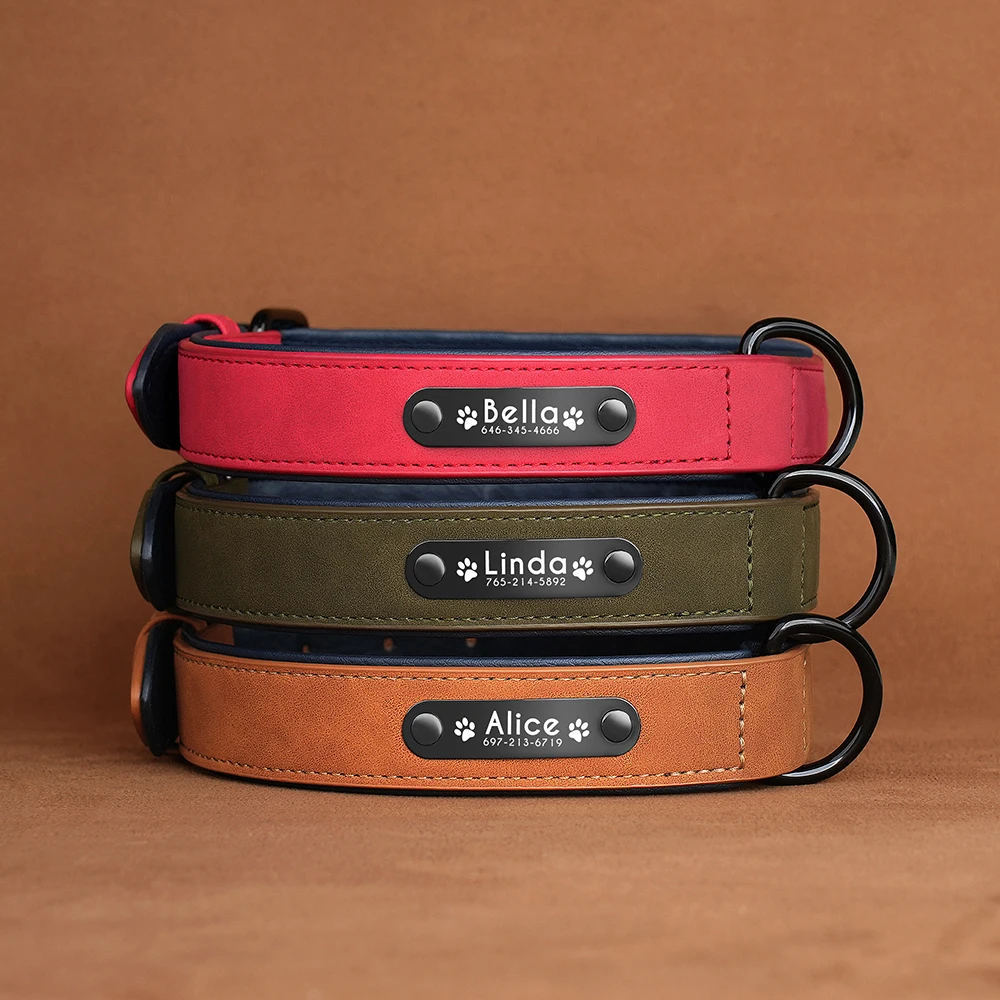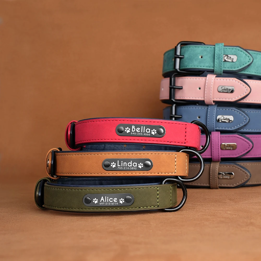 Collar acolchado y suave duradero con grabado de nombre para perros pequeños, medianos y grandes