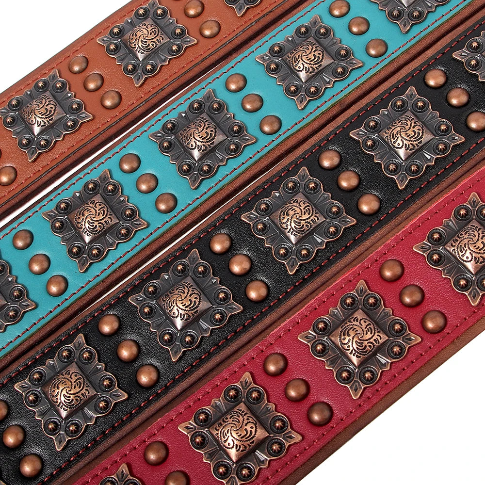 Collar de lujo con remaches metálicos y correa anchos de cuero auténtico