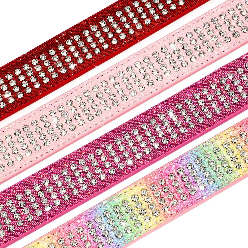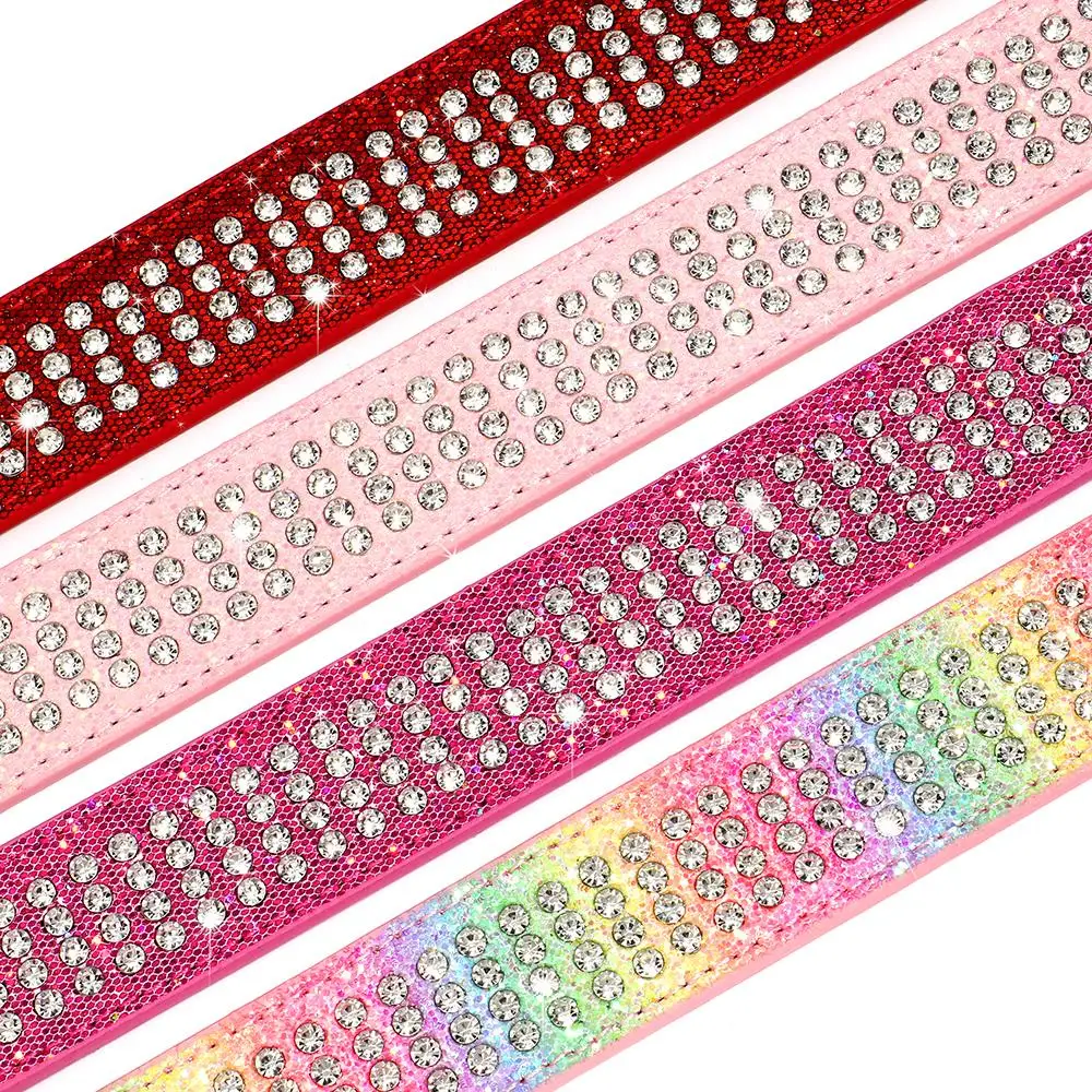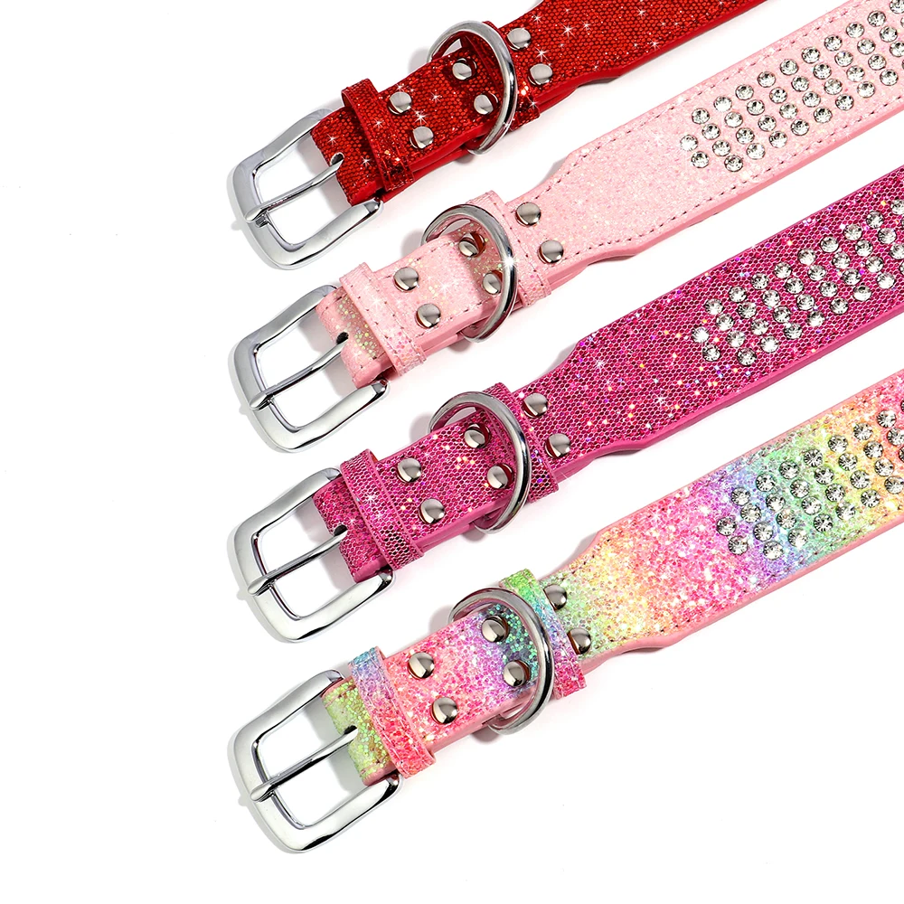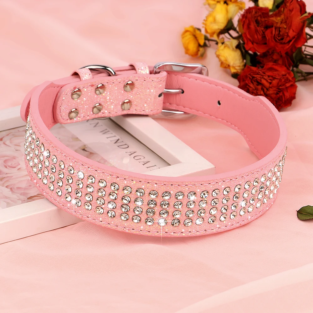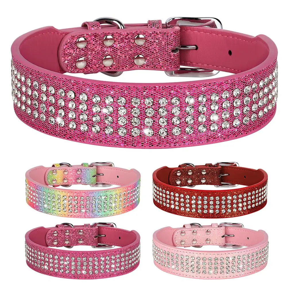 Collar ancho con 4 filas de cristales para perros pequeños, medianos y grandes (Pitbull, etc.)