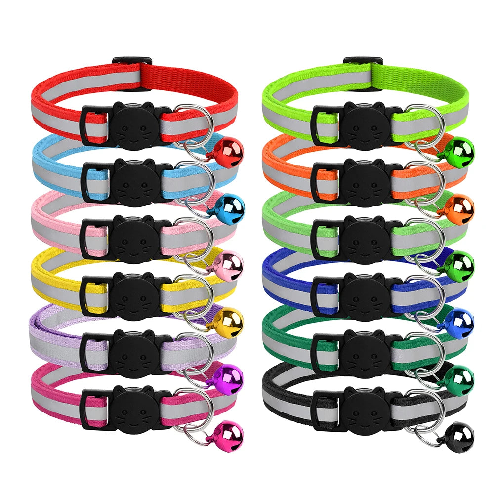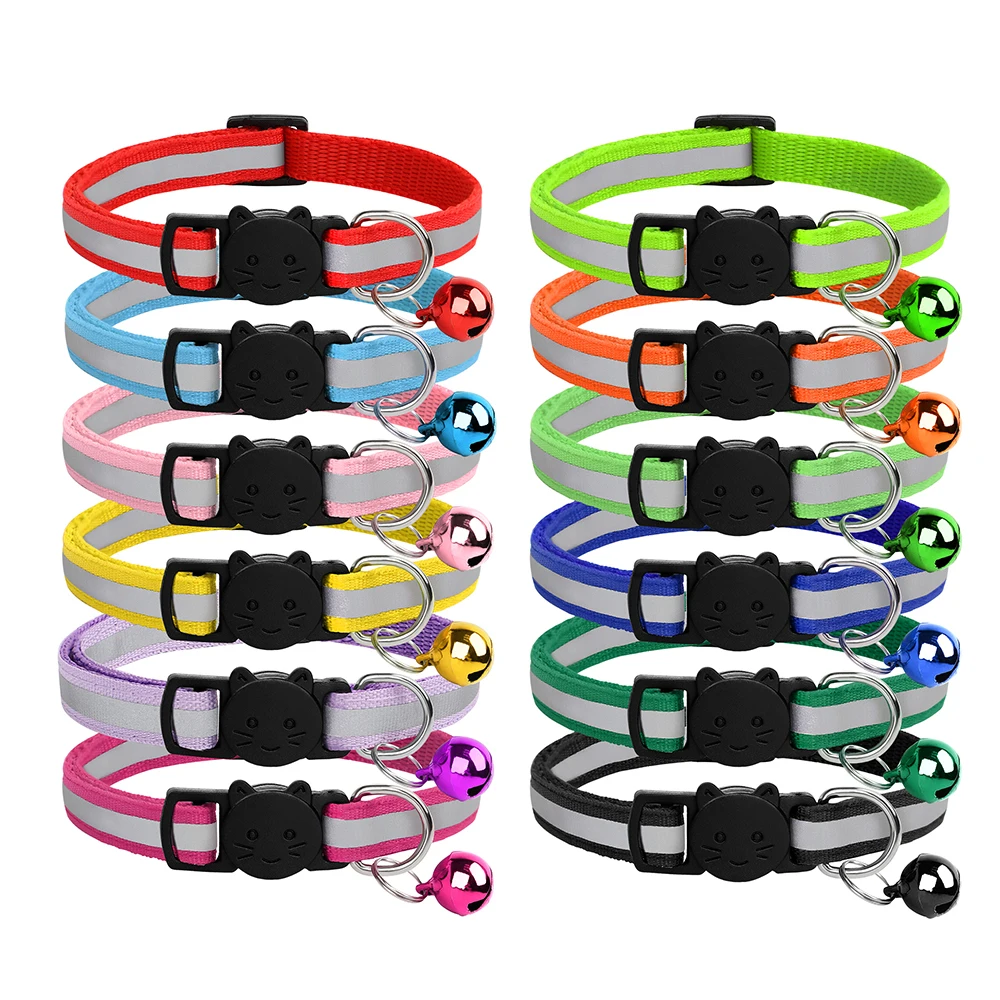 Collar de nailon reflectante con campanita Ajustable para gatos